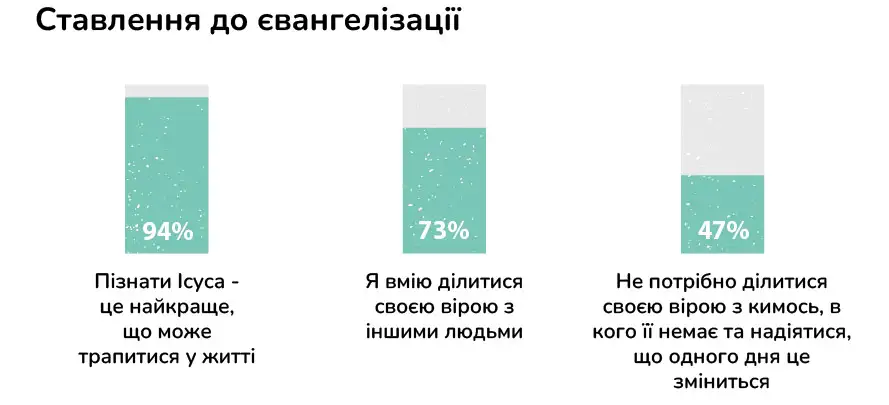 У 2018 році у Сполучених Штатах провели дослідження серед активних християн у віці 20-35 років. Майже половина з них вважає, що євангелізація не проводиться так, як потрібно, але в той же час згоджуються, що пізнати Ісуса - це найкраще, що може трапитися у житті будь-якої людини.